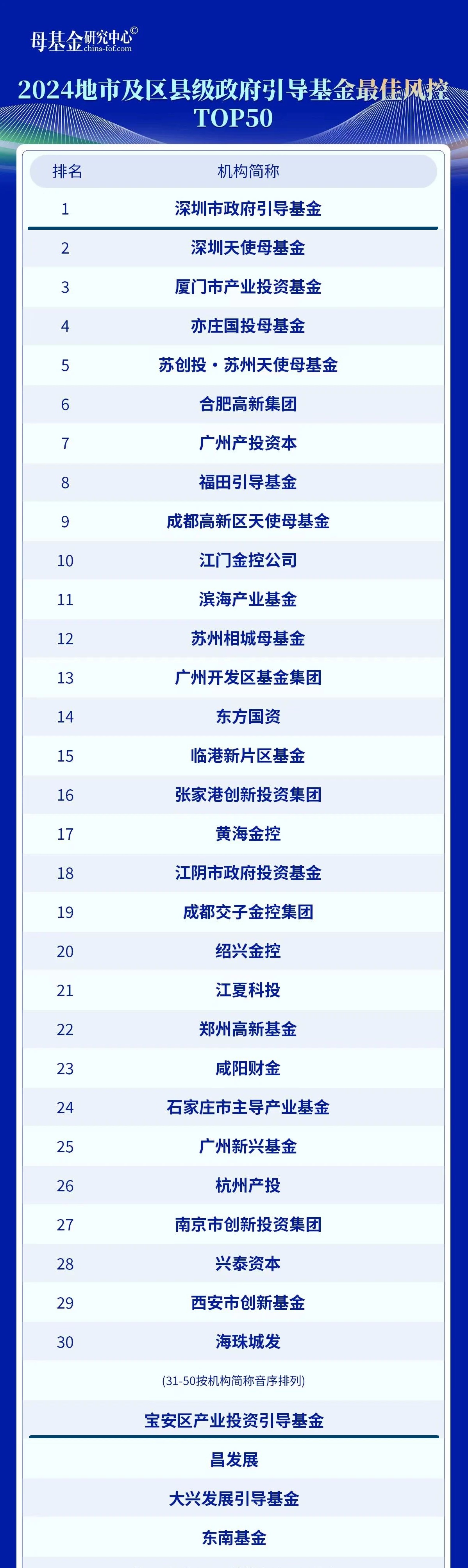 2024地市级及县区级政府引导基金最佳风控TOP50