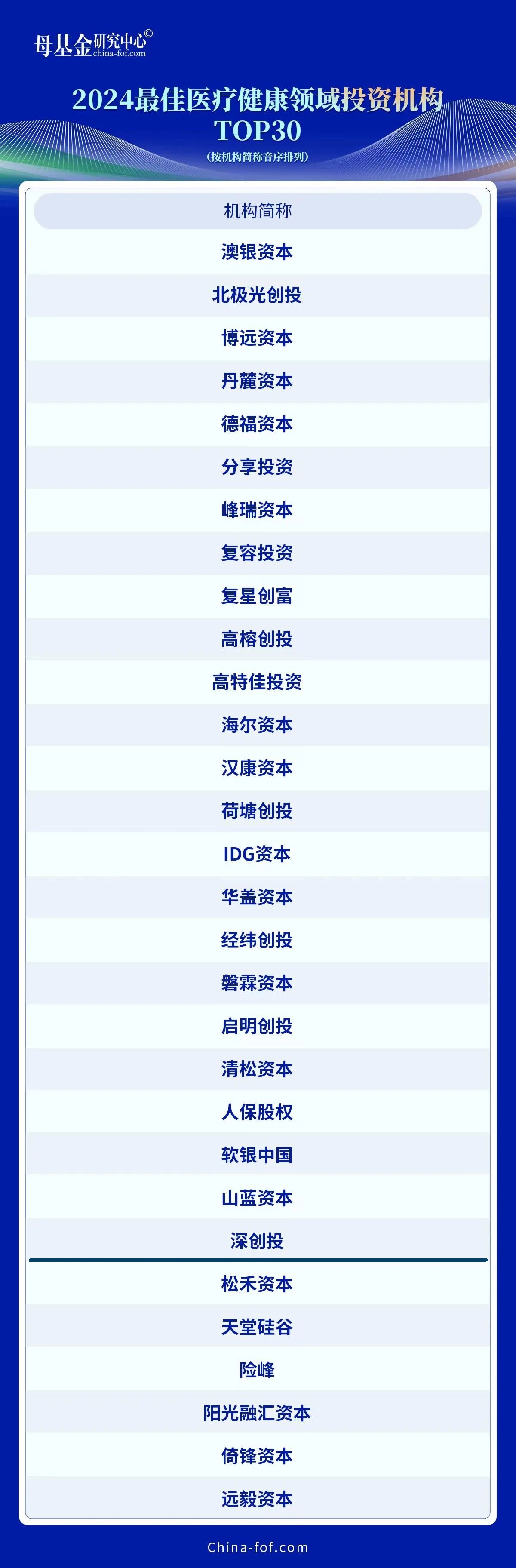 2024最佳医疗健康领域投资机构TOP30