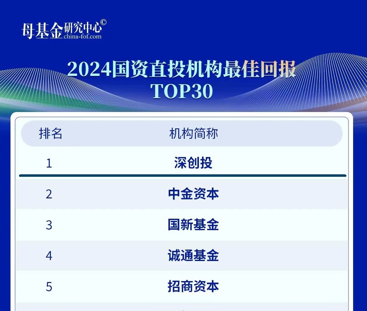 2024国资直投机构最佳回报TOP30第一名