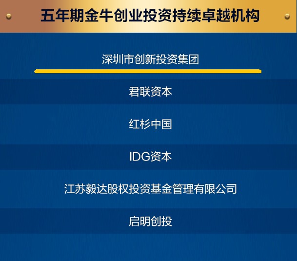 五年期金牛创业投资持续卓越机构