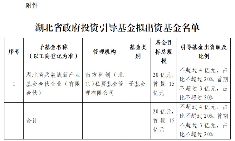 关于湖北省政府投资引导基金拟出资基金的公告