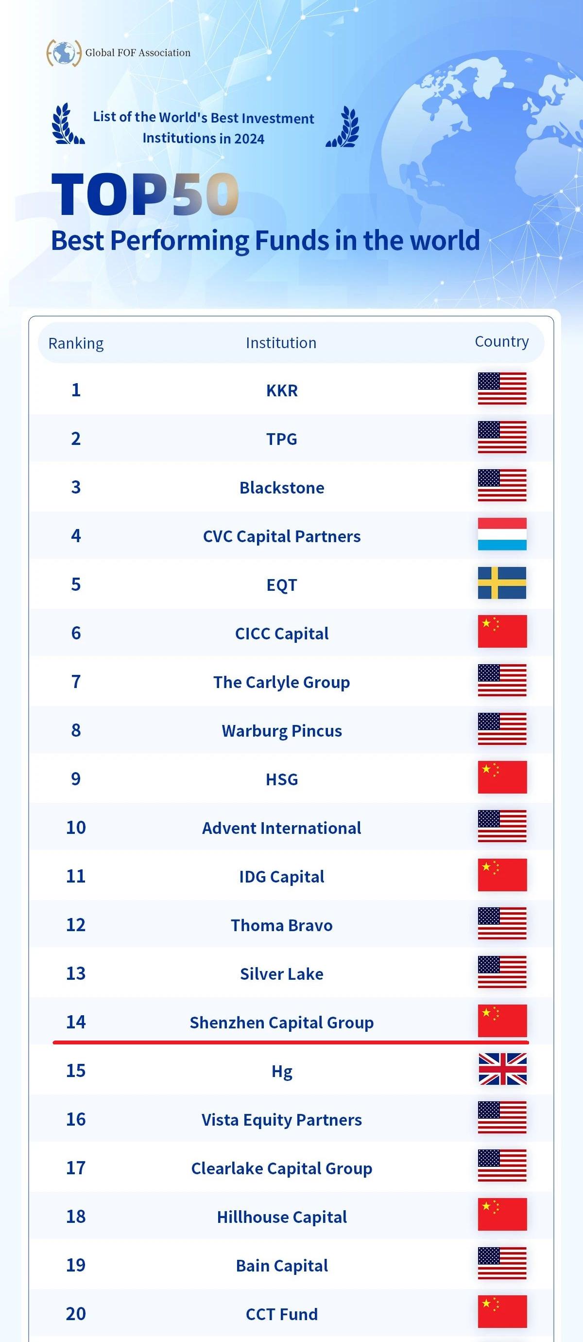 TOP50 Best Performing Funds in the world(全球最佳直投基金TOP50 )第14名