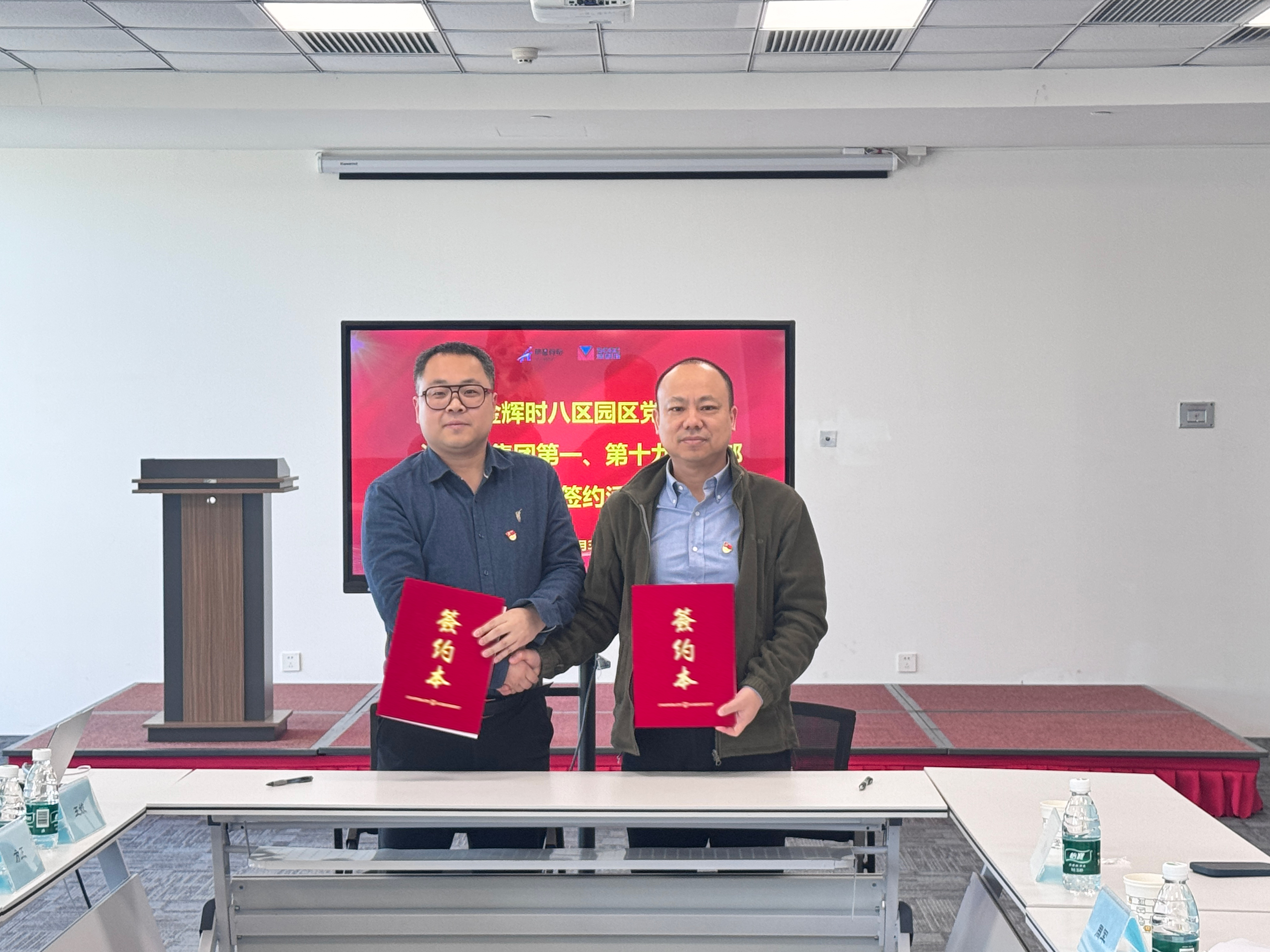 在全体与会代表的见证下,第十九党支部与金辉时八区园区党支部签署共建协议。共建签约后,双方开展了第一次共建学习交流活动,并就航空航天行业的发展现状和产业趋势进行讨论和交流。