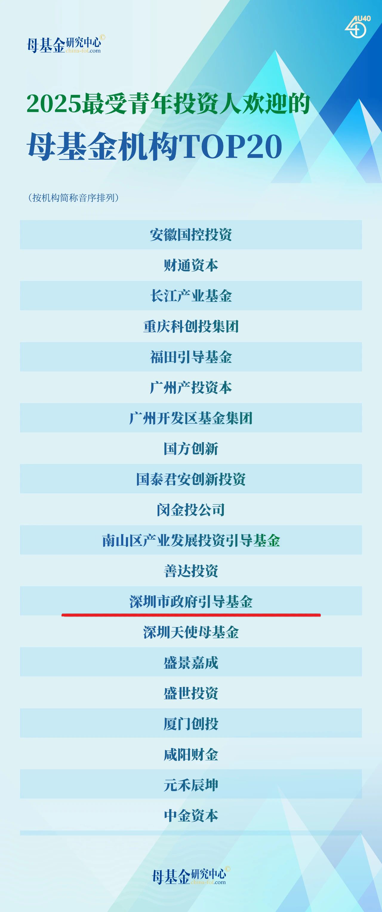 2025最受青年投资人欢迎的母基金机构TOP20