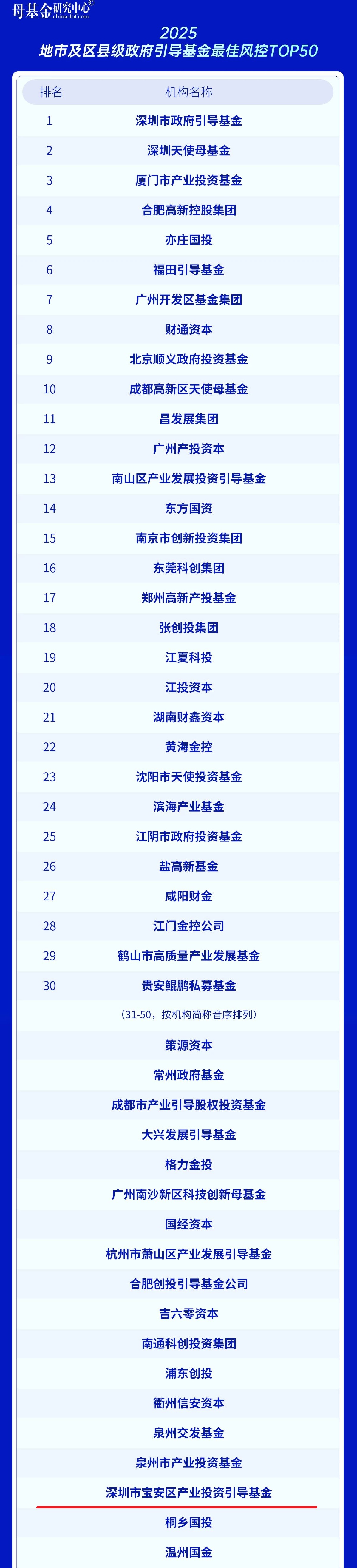 2025地市及区县级政府引导基金最佳风控TOP50