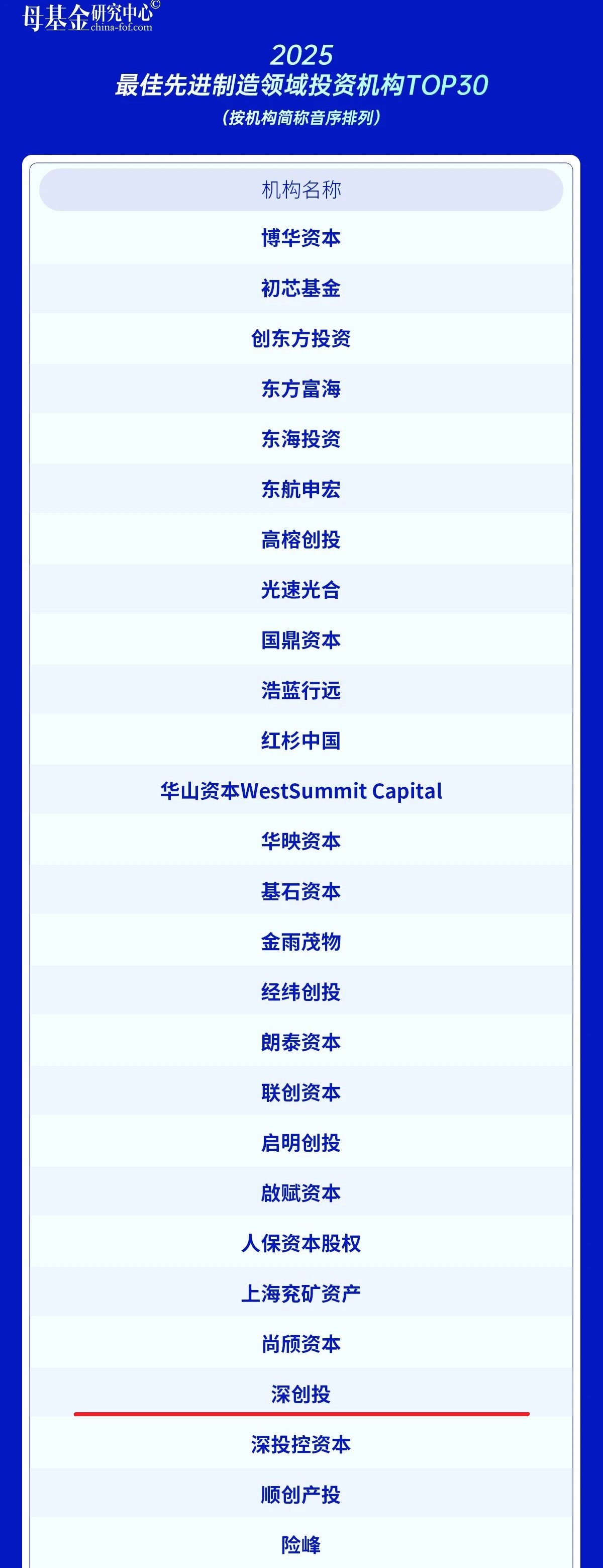 2025最佳先进制造领域投资机构TOP30