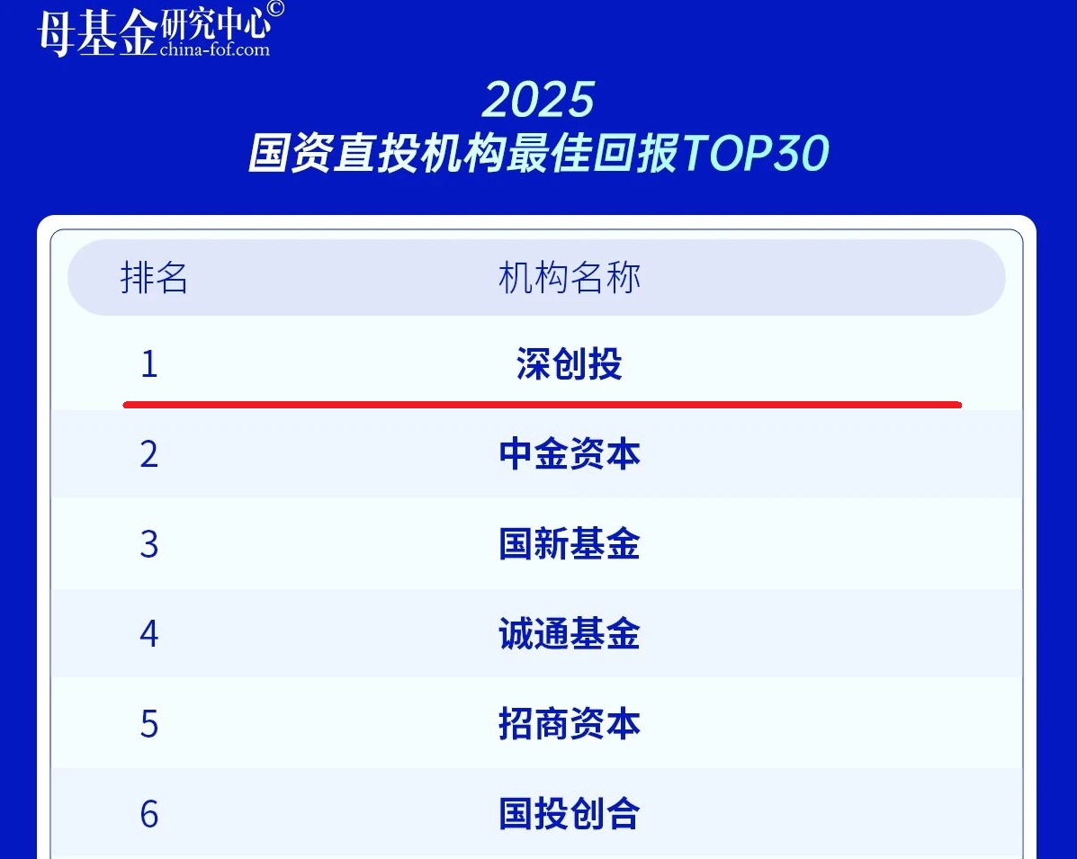 2025国资直投机构最佳回报TOP30 第一名