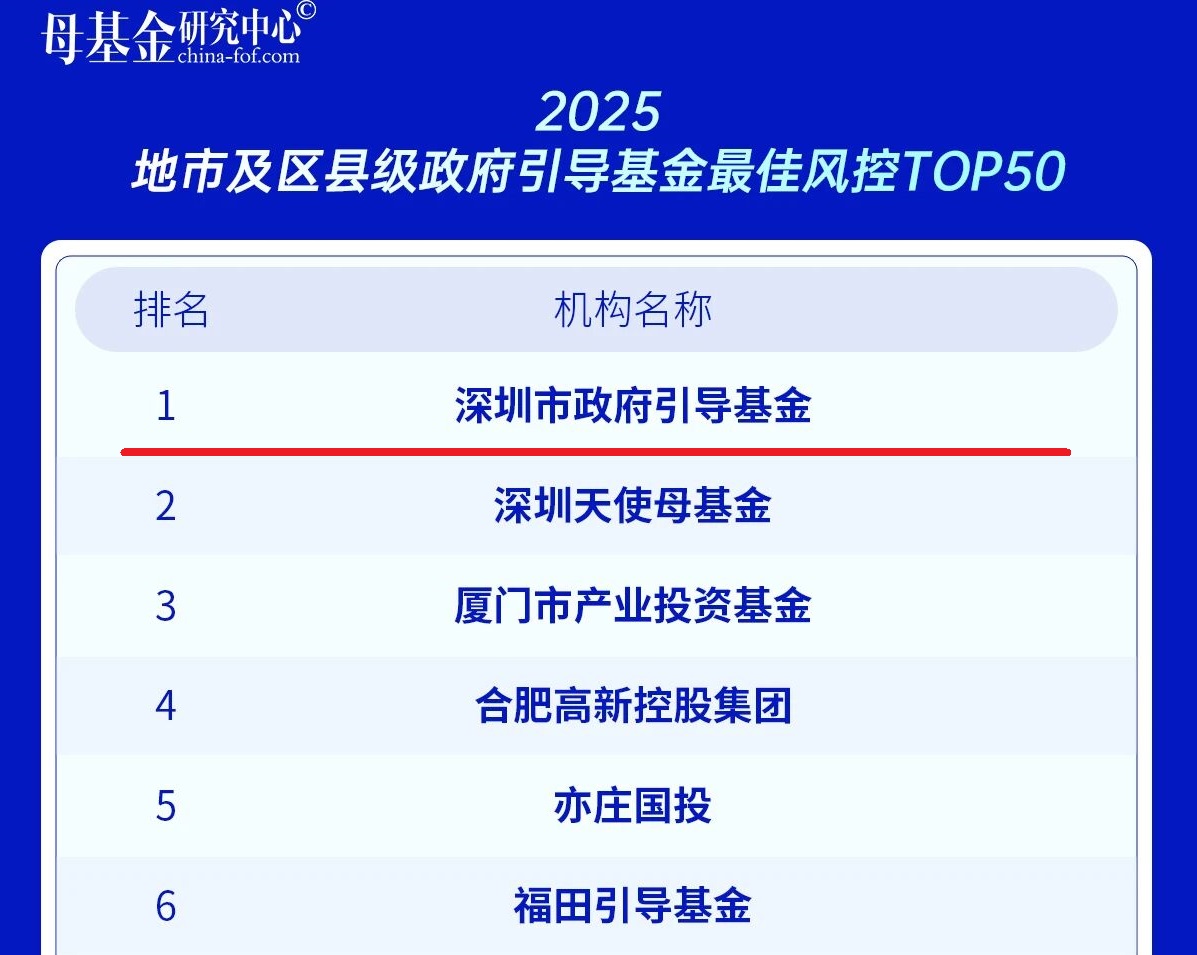 深圳市政府引导基金获评:
