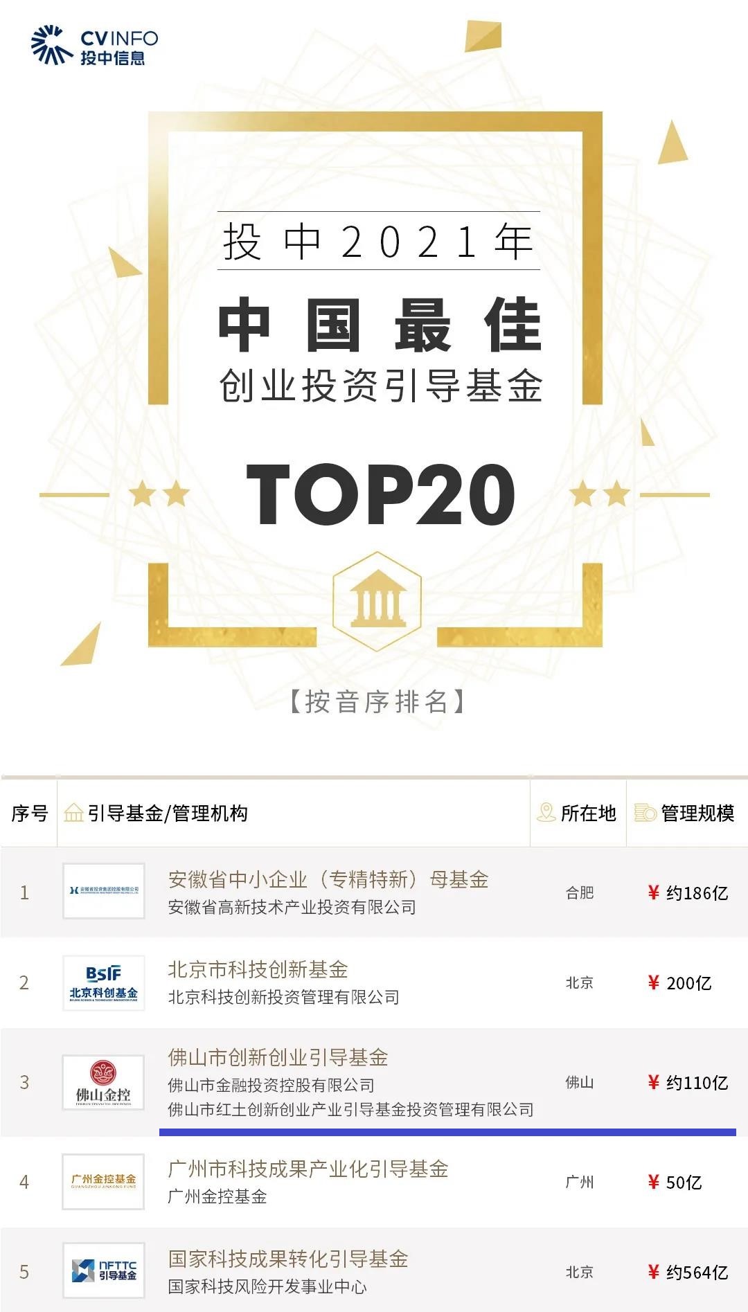 投中2021年中国最佳创业投资引导基金TOP20