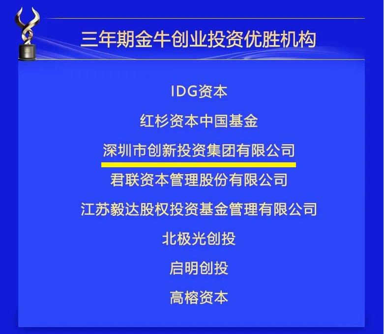 12月22日,中国证券报发布第五届中国股权投资金牛奖榜单,深圳市创新投资集团(简称“色色啦 ”)及管理基金、投资案例获多项荣誉。