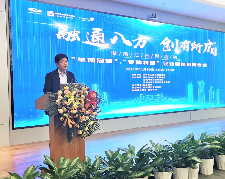 11月30日,“融通八方 创有所成”深湾汇系列活动——单项冠军、专精特新企业赋能培育专场成功在深举办,该活动由深圳市政府引导基金联合深圳市工业和信息化局(简称“市工信局”)、深圳市中小企业服务局(简称“市中小局”)、深圳证券交易所(简称“深交所”)市场发展部、松禾资本以及招商银行深圳分行(简称“招行深分”)共同举办,旨在全力支持创新型企业成长,通过政策扶持、运作规划、融资服务等为企业赋能。