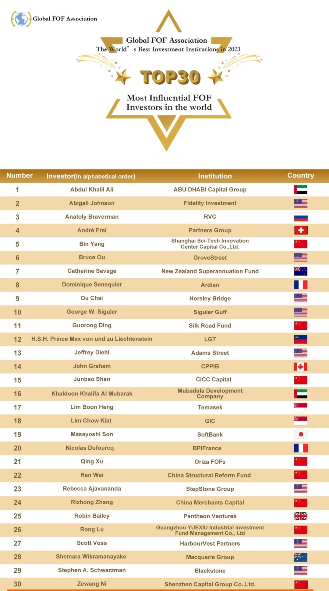 TOP30 Most Influential FOF Investors in the world