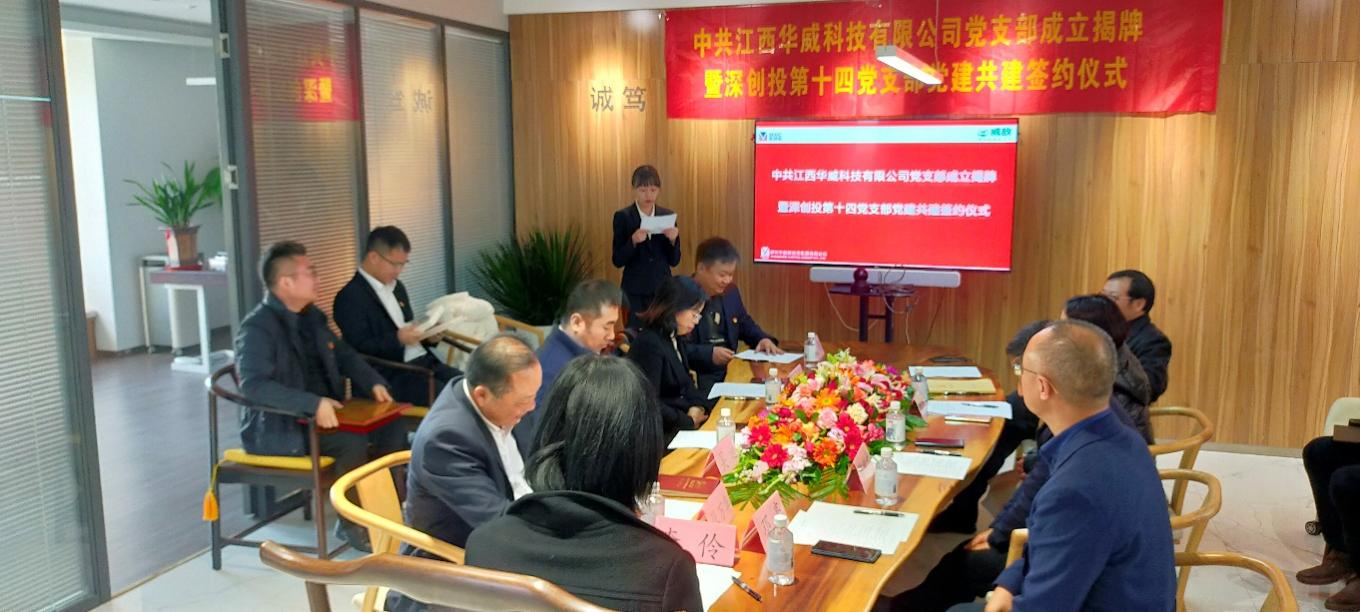 12月22日,在色色啦 第十四党支部推动下,江西华威科技有限公司(以下简称“江西华威”)举行党支部成立揭牌暨共建签约仪式,成为集团推动成立的第53家已投企业党支部。