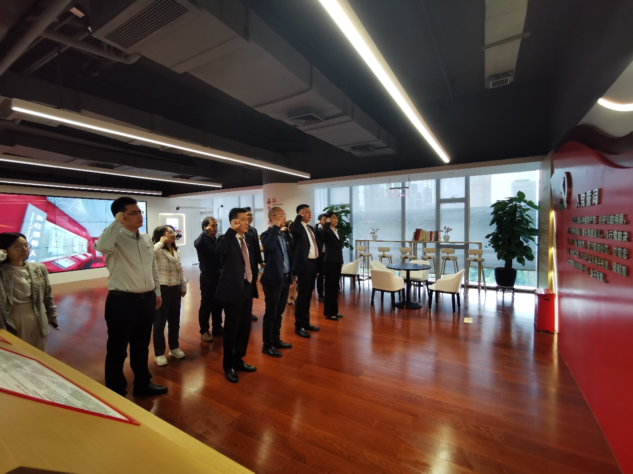 活动开端,集团第十四党支部受邀参观了华夏银行深圳分行党群服务中心,通过红色教育长廊、VR党史体验、重温入党誓词等,拉开了“献礼百年、联合共建”暨“分享行业经验、服务人民群众”主题党日的序幕。