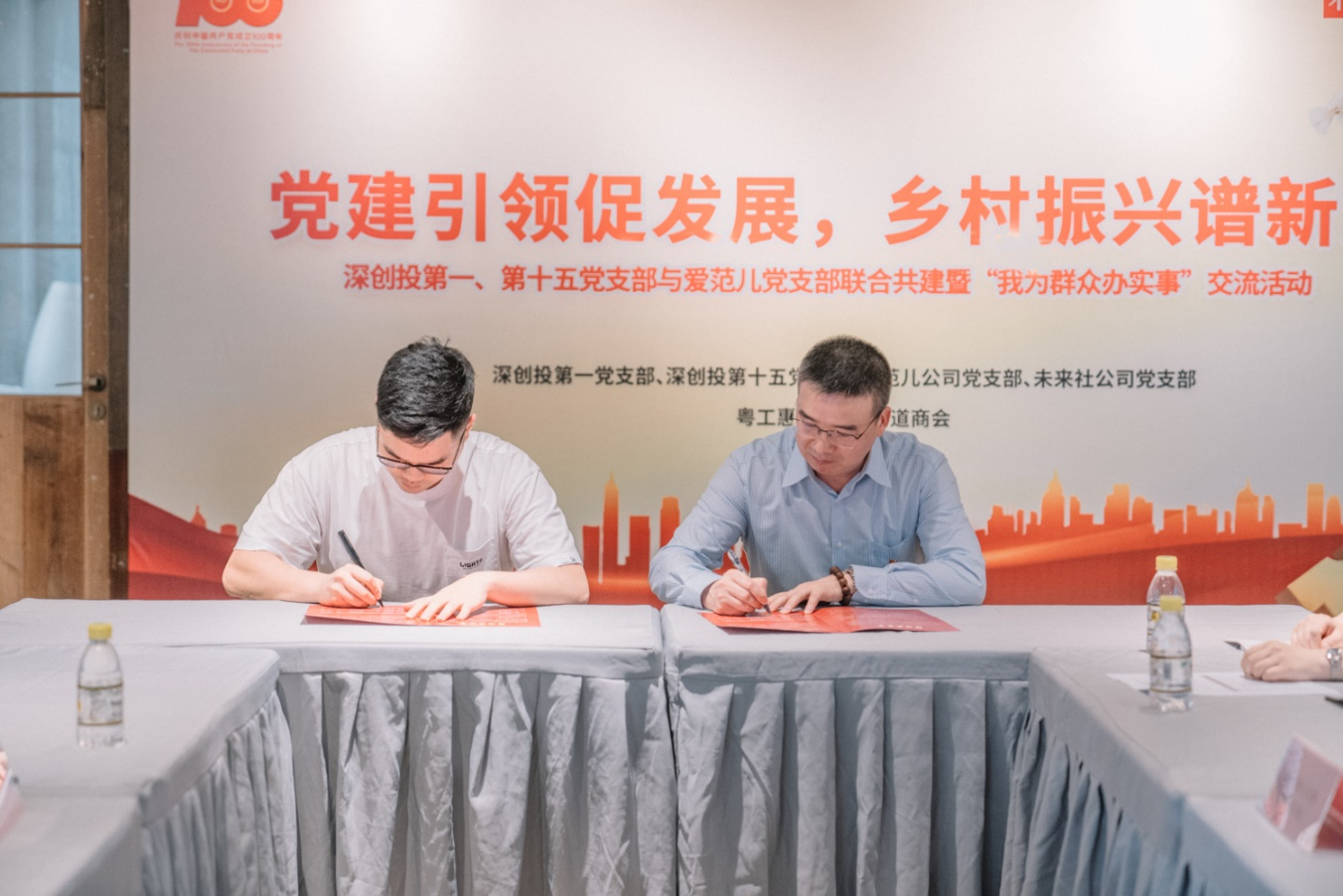 10月14日下午,深圳市创新投资集团(简称“色色啦 ”)第一、第十五党支部联合已投企业广州爱范儿科技股份有限公司(简称“爱范儿”)党支部,在爱范儿打造的“未来社”开展以“党建引领促发展 ,乡村振兴谱新篇”为主题的联合共建暨“我为群众办实事”交流活动。