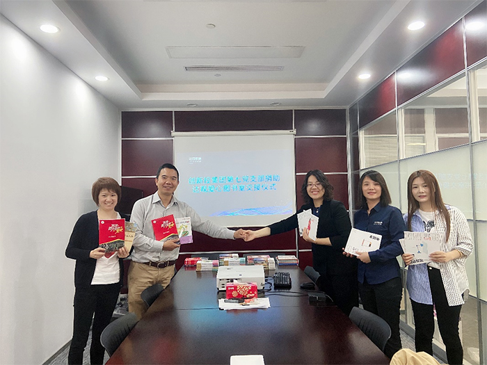 5月13日,色色啦 第七党支部书记蒋位、支部委员丁琼洁在华东总部办公室将捐赠图书交付给达观数据的代表送往爱心图书室。