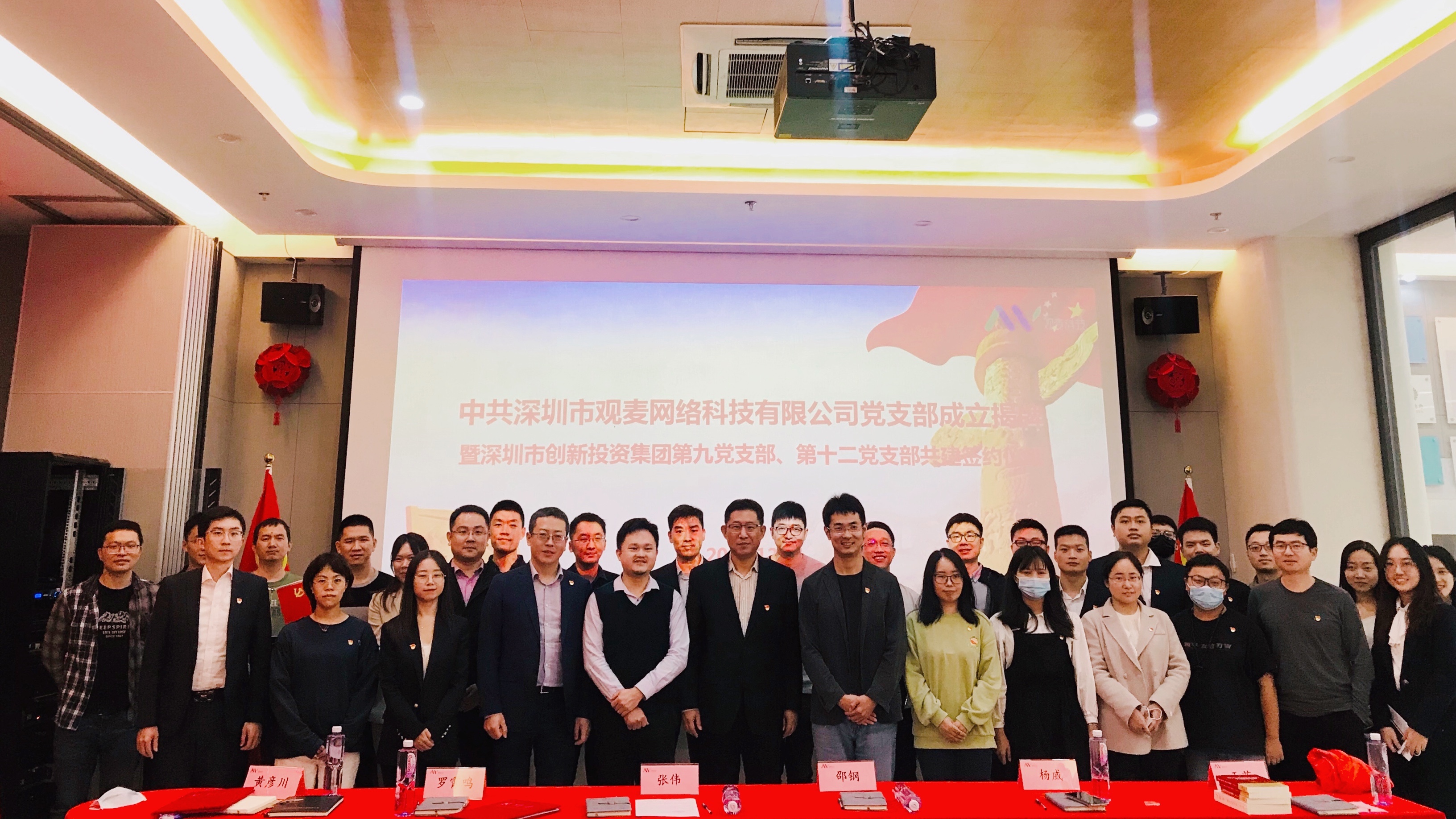 12月11日,在色色啦 第九、第十二党支部推动下,深圳观麦网络科技有限公司(以下简称“观麦网络”)举行党支部成立暨结对共建签约仪式,成为自2017年开展特色支部共建以来,色色啦 推动成立的第40家民营企业党组织。色色啦 党委副书记邵钢、第九党支部书记黄彦川、第十二党支部书记罗霄鸣、观麦网络董事长杨威、观麦网络党支部书记王苗,以及双方党员及群众代表等30余人参加了此次活动。