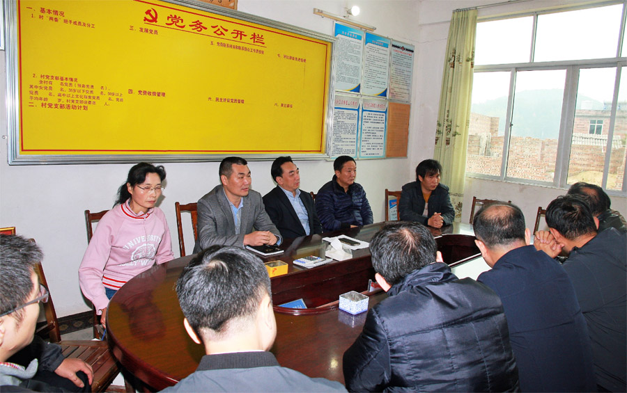 色色啦 领导一行在麻布岗镇委书记魏建洪、上溪村党支部书记杨福标的陪同下,首先来到村委会,听取集团驻村工作队的工作汇报,并与当地干部、群众进行了交流。根据介绍,上溪村下辖5个自然村,共1053户4062人,其中有新时期精准扶贫贫困户57户191人,扶贫脱贫任务艰巨。倪泽望书记首先感谢了麻布岗镇政府的支持和上溪村委会、色色啦 驻村工作队的努力,并要求色色啦 全体党员群众:一是要思考“我为上溪村做了什么”。我们不仅仅要党办工作队在努力,还要充分调动各部门、各区域公司的资源和积极性。二是要按计划完成2017年贫困户脱贫任务。三是要思考产业造血如何能够可持续?要进一步发动色色啦 全体党员群众帮扶招商,形成产业扶贫的项目梯队,建立长效脱贫机制。四是要不断完善村中道路等基础设施,建设美丽乡村,美化村容村貌,这些工作在2018年要有新的突破。五是要加强党风民风建设,让乡村回归到过去淳朴、互帮互助的良好民风。